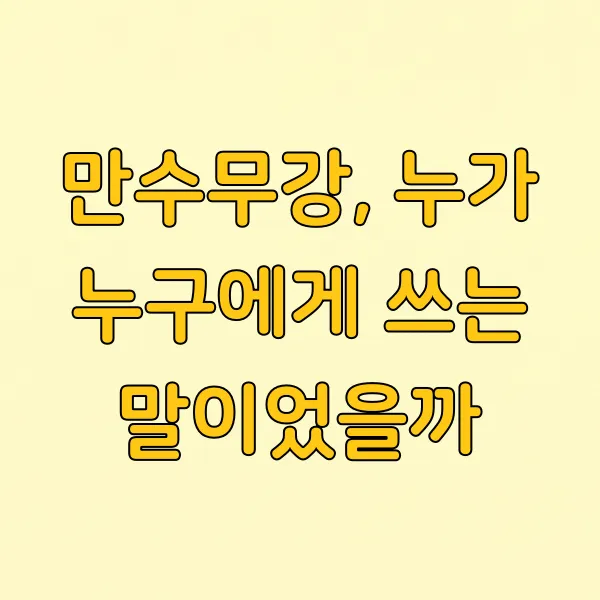 Q4. '만수무강'을 잘못 쓰면 어떤 문제가 있나요? A4. 특별히 큰 문제는 없지만, 원래의 깊은 뜻을 제대로 이해하지 못하고 단순히 '오래 살아라'는 의미로만 쓰면 덕담의 격이 낮아 보일 수 있습니다.